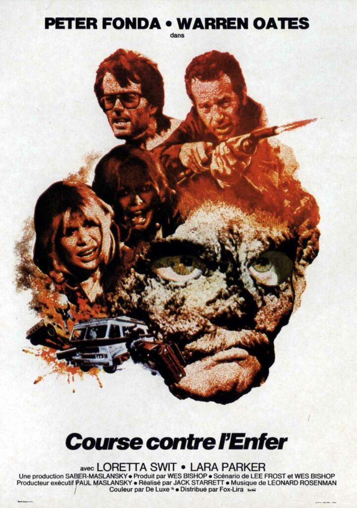 Toute la force du film est d’avoir su oser le mélange et la citation intelligente. Le casting, tout d’abord : les héros masculins sont campés par deux icônes du genre, Peter Fonda (Easy Rider, Larry le dingue, Mary la Garce) et Warren Oates, un des acteurs fétiches de Peckinpah. L’ombre de ce dernier plane au-dessus du métrage dans ses accès de violence chorégraphiés et la détermination désespérée de ses protagonistes, et Starrett se permet même de préfigurer l’excellent Convoi de Bloody Sam à grand renfort de spectaculaires cascades routières. Le voyage initiatique de la figure consumériste de Oates pensant à tort triompher de la nature, de la masse et de l’inconnu (il vante longuement les mérites de son véhicule et de l’individualisme à son comparse) rappelle forcément celui de Délivrance. Quant au personnage de Fonda, hippie sur le retour rechignant au combat mais devant y céder par force face à une culture différente, il prend à la fois sa source dans Les Chiens de paille et Massacre à la tronçonneuse (Paul A.Partain, le Franklin du chef-d’œuvre de Tobe Hooper, fait d’ailleurs une brève apparition ici pour mieux boucler la boucle).
