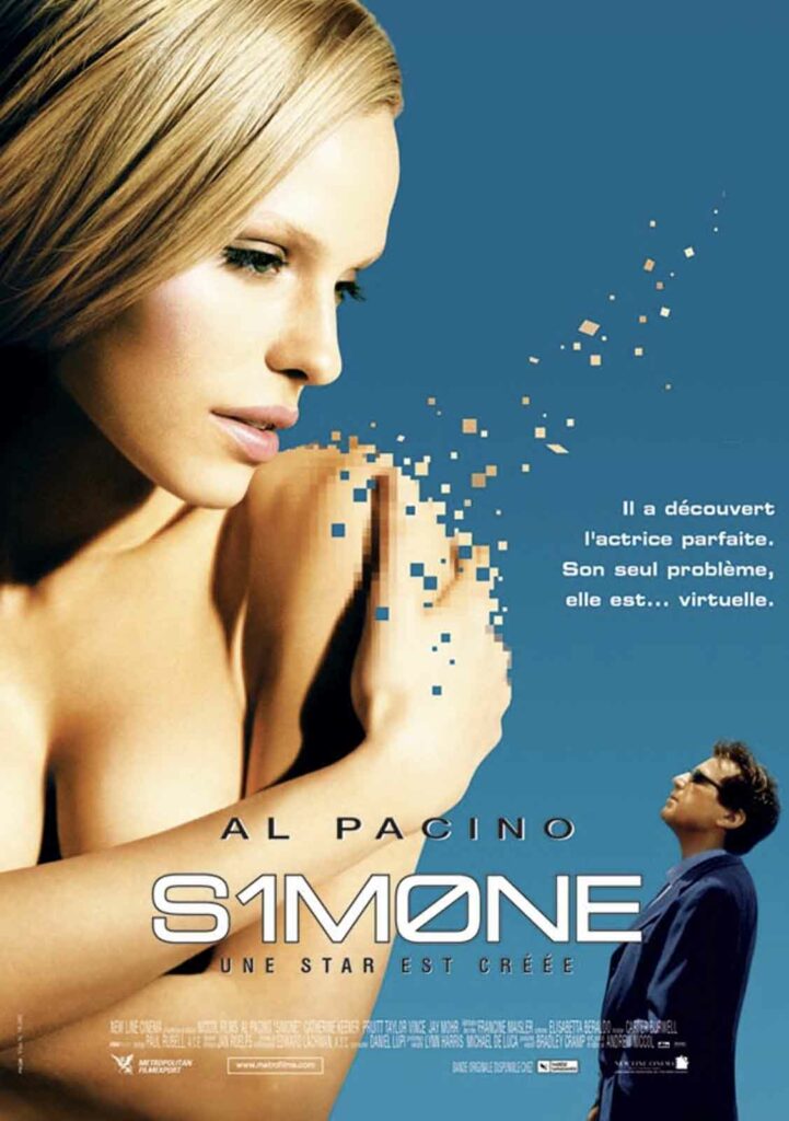 Passionné par les univers virtuels, les faux-semblants et les dérives technologiques, comme le prouvent les scénarios qu’il a écrits pour The Truman Show et Bienvenue à Gattaca, Andrew Niccol a décidé d’attaquer le sujet de front avec Simone. Son héros est Victor Taransky, interprété par Al Pacino, un réalisateur hollywoodien renommé qui se heurte quotidiennement aux sautes d’humeur de ses comédiennes, notamment celles de Nicola Anders (Winona Ryder). Après la rencontre d’un savant un peu fou qui lui confie un logiciel révolutionnaire avant de passer l’arme à gauche, Victor décide de franchir un pas décisif : créer de toutes pièces une actrice virtuelle et faire d’elle une star. Il la baptise Simone (contraction de « simulation one ») et le résultat dépasse toutes ses espérances, l’incitant à dire : « il est plus facile de tromper des centaines de personnes qu’une seule ». Comme tout apprenti sorcier qui se respecte, ce Pygmalion d’un nouveau genre perd ainsi le contrôle de sa Galatée numérique, qui déclare avec une inquiétante lucidité : « je suis la mort de la réalité… »