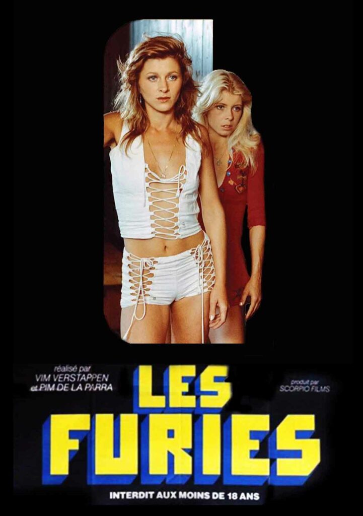 Personnalités clés du cinéma d’exploitation hollandais des années 60 et 70, Pim de la Parra et Wim Verstappen ont fondé la compagnie Scorpio Film en se répartissant à tour de rôle les postes de réalisateur et de producteur. Nous leur devons notamment le drame voyeuriste Obsessions (aucun lien avec celui de Brian de Palma, même si le compositeur est aussi Bernard Herrmann), co-écrit par un Martin Scorsese encore inconnu, la chronique trouble Les Affamées, le chassé-croisé romantique Scènes de la vie amoureuse d’un couple, le sulfureux Alicia et cet inclassable Les Furies. À mi-chemin entre le film érotique, le film d’horreur, le thriller et le drame psychologique, ce long-métrage curieux ne se réclame pourtant d’aucun de ces genres en particulier, son titre original à rallonge alignant le prénom de tous les protagonistes entre lesquels va se nouer l’intrigue. Le ton est donné dès l’entame, malgré un générique faussement paisible s’attardant sur des cygnes flottant sur l’eau tranquille d’un lac. Deux séduisantes jeunes femmes en robe courte et minishort aguichent un automobiliste qui emprunte une petite route bucolique. Celui-ci – un Américain caricatural en décapotable, avec cigare, whisky et lunettes de soleil – se laisse attirer par le duo affriolant, mais la partie de jambes en l’air tourne court lorsque l’une d’entre elles lui fracasse le crâne avec une bouteille. Toutes guillerettes, les deux furies abandonnent le cadavre et la voiture en pleine campagne puis regagnent sereinement leurs pénates.