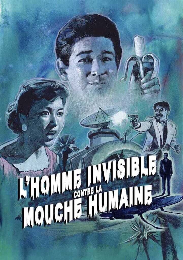 Cinq ans après L’Homme invisible apparaît, le cinéma de science-fiction japonais tente une variante sur le même thème avec cet étonnant Vengeur invisible. Au cours d’un prologue choc qui lance l’intrigue sur les chapeaux de roue, un automobiliste est persuadé d’avoir heurté quelqu’un en pleine rue, dans le quartier animé de Ginza. La foule se masse autour de son véhicule mais on ne voit personne. Soudain du sang apparaît sous la voiture, puis un cadavre. Aux côtés de ce corps mystérieux se trouve une lettre de suicide. L’homme y explique qu’il faisait partie d’un commando d’agents invisibles créés par le gouvernement à l’aide d’un rayon radioactif. Tous sont morts au large de l’île de Saipan sauf deux d’entre eux qui se sont échappés. Celui-ci ayant décidé de mettre fin à ses jours, ne supportant plus cette vie de paria invisible, il en reste un dernier. Mais où est-il ? Komatsu (Yoshio Tsuchiya), un jeune reporter enthousiaste, décide de mener l’enquête. Le spectateur devine assez rapidement que l’homme que tout le monde recherche est Nanjo (Seizaburô Kawazu), qui cache son invisibilité en se maquillant comme un clown et gagne chichement sa vie en portant des panneaux publicitaires…