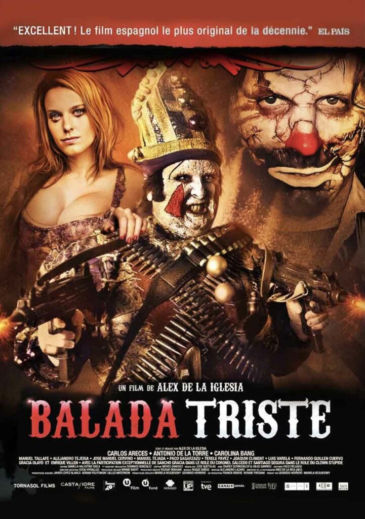 Il est de plus en plus rare de s’asseoir dans une salle de cinéma et d’ignorer où le film que nous allons voir s’apprête à nous embarquer, puis de voyager de surprise en surprise, chaque rebondissement bifurquant dans une nouvelle direction inattendue, et de réaliser finalement que cet objet cinématographique s’avère insaisissable. Balada Triste est l’un de ces objets rares. À la fois reconstitution historique, histoire d’amour, comédie, drame et film d’horreur, ce spectacle incroyable se vit comme un tour de montagnes russes nous ballotant sans cesse d’une émotion à l’autre pour finalement nous laisser K.O. Soucieux de revenir à ses racines, Alex de la Iglesia décide pour la première fois de sa carrière d’écrire un scénario seul, sans l’apport de son fidèle comparse Jorge Guerricaechevarria, et bâtit un récit torturé dont chaque déchirure semble être une métaphore de l’histoire espagnole, marquée par la guerre, le fascisme et le terrorisme.