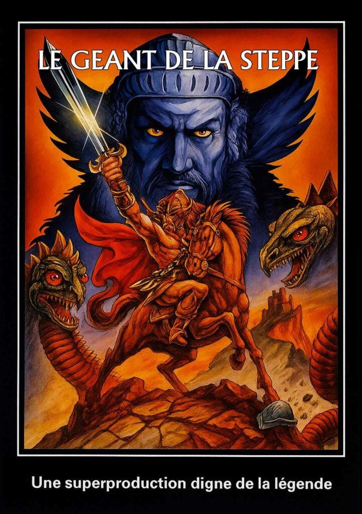Ce récit folklorique est régulièrement ponctué par l’apparition de créatures imaginaires qui ne peuvent qu’égayer l’amateur de fantasmagories. Outre le chevalier géant des montagnes qui ouvre le bal, on note un démon aux allures d’homme de Neandertal qui souffle de redoutables rafales de vent (via des prothèses mécaniques étonnantes) ou encore un colosse grimaçant aux allures de Bouddha soutenu par une horde de serviteurs (une marionnette grandeur nature actionnée de l’intérieur). Il faut cependant attendre la bataille finale pour que surgisse le clou du spectacle, autrement dit un impressionnant dragon tricéphale qui vaut au film son titre international : The Sword and the Dragon. Cet ancêtre du Ghidrah japonais fend les airs en battant des ailes tandis que ses têtes crachent du feu. Le film abonde alors de visions surréalistes, comme celle de la gigantesque silhouette du monstre qui vole derrière les belligérants, plane au-dessus des décors enfumés ou enflamme champs et drakkars. Conçu tour à tour à l’aide d’une maquette miniature et d’une marionnette grandeur nature, ce monstre reptilien finira triplement décapité à l’issue d’un combat particulièrement mouvementé. Riche en sentiments patriotiques exacerbés (« c’est la terre que j’aime et que défendrai contre les envahisseurs » dit l’un des dialogues), ponctué d’humour et même de quelques chansons, Le Géant de la steppe est un spectacle unique en son genre qui se bonifie à chaque visionnage malgré son idéologie aujourd’hui datée.