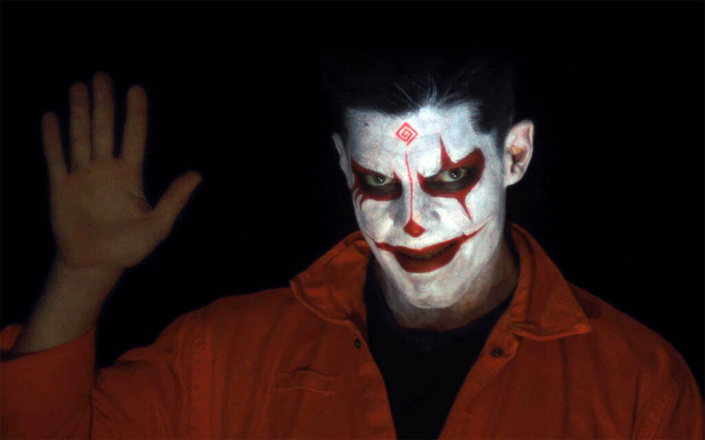Cette hystérie collective, qui semble directement inspirée par Carl Cane lui-même, pourtant enchaîné dans sa cellule et apparemment incapable de communiquer avec le monde extérieur, nous rappelle l’appel au chaos du Joker dans The Dark Knight, mais aussi la secte d’assassins de la série Following. Après ce montage de prétendues images d’archives, qui emprunte ses effets de style au « found footage », nouveau changement de cap : dans une atmosphère proche de celle du Silence des agneaux, nous découvrons Cane dans sa cellule, désormais adulte (Ronan Summers), ricanant, charismatique et insaisissable, traité par une psychiatre qui ne lui fait pas de cadeau, le docteur Ellen Marks (Jeanine Nerissa Sothcott). John Parker (Michael Paré), le policier qui avait arrêté Cane vingt ans plus tôt, mène l’enquête et tente de faire le lien entre ce psychopathe sous verrou et la prolifération de clowns inquiétants qui commencent sérieusement à semer la panique dans la ville. Bientôt, les deux filles du docteur Marks, Leah (Caroline Wilde) et Alice (Megan Marszal), semblent devenir les cibles privilégiées de cette menace croissante et grimaçante…