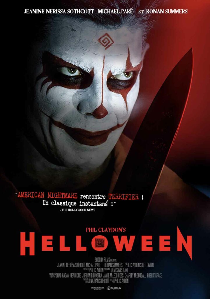 Helloween soigne au mieux sa mise en forme malgré des moyens qu’on imagine très limités. Mais passée sa première partie, l’intrigue ne parvient pas à tenir toutes ses promesses. Le gigantesque chaos qu’on nous annonce – des centaines de fous maquillés en clowns qui prennent le contrôle de la ville – se retrouve cantonné à deux lieux en huis-clos – la maison de la famille Marks et l’hôpital psychiatrique – et à une toute petite poignée de personnages. Phil Claydon finit par sacrifier aux clichés du genre, à grand renfort de « jump-scares » attendus et de rebondissements souvent tirés par les cheveux. Le manque d’attrait du casting ne joue pas non plus en faveur d’Helloween. Visiblement victime d’un abus de chirurgie esthétique, Jeanine Nerissa Sothcott a bien du mal à nous communiquer la moindre émotion, comme si son visage aux allures de masque en plastique avait perdu toute expressivité. À ses côtés, Michael Paré nous paraît bien fatigué, bien loin de l’énergie qu’il dégageait dans Les Rues de feu, Philadelphia Experiment, Moon 44 ou Pleine Lune. Certes, l’acteur a passé la soixantaine, mais tout de même… Reste Ronan Summers. Dans la peau du tueur clownesque, il porte littéralement le film sur ses épaules. Sa présence magnétique et son jeu habité lui permettent de voler la vedette à tous ses partenaires. Hélas, cela ne suffit pas à sauver un Helloween qui s’essouffle progressivement, avant de s’éteindre sur un épilogue en queue de poisson.