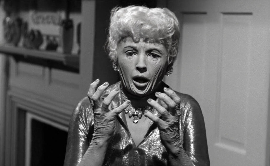 Dès qu’il se transporte dans la jungle, le film véhicule une image très caricaturale de l’Afrique, qui ne surprenait pas outre mesure au début des années 30 (époque de Tarzan l’homme singe, King Kong ou Tintin au Congo) mais semble sérieusement datée trois décennies plus tard. Toute la première partie de La Femme sangsue souffre de cette accumulation d’archétypes et de rebondissements souvent capillotractés. Le troisième acte, qui nous ramène à la civilisation, se révèle beaucoup plus intéressant. Car notre « femme sangsue » (le terme « veuve noire » conviendrait tout autant) se lance désormais dans une croisade à mi-chemin entre les méfaits de la comtesse Bathory et ceux de Dorian Gray. Sa quête de jeunesse est tellement désespérée qu’elle en perd toute notion de bien et de mal, même si l’issue du drame sera forcément fatale – son personnage semble le savoir aussi bien que les spectateurs. Si les rôles masculins, y compris Grant Williams, ex-Homme qui rétrécit, restent très en retrait, le film repose majoritairement sur les épaules de Coleen Gray. Ex-tête d’affiche d’Howard Hawks (La Rivière rouge) et de Stanley Kubrick (L’Ultime razzia), la comédienne crève l’écran sous les atours respectifs de la femme aigrie et vieillissante, de la jeune séductrice briseuse de ménages et du monstre décrépit qui se révèle peu à peu, sous les bons auspices du maquilleur Bud Westmore. Le film reste très théâtral, y compris au cours de son climax expédié à la va-vite, mais vaut au moins le détour pour la prestation étonnante de son actrice principale.