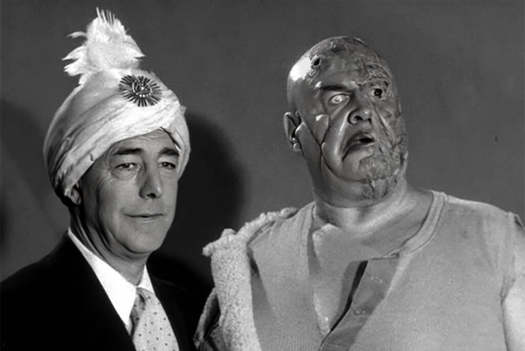 Ed Wood parvient parfois à nimber son film d’une atmosphère sépulcrale intéressante, à travers les surgissements de ses fantômes féminins au teint blafard et au regard fixe, évoluant lentement dans un halo de fumée et drapées dans des voiles flottants. Ces visions évoquent un imaginaire presque romantique, comme si le réalisateur anticipait sur le cinéma gothique de Mario Bava ou de Roger Corman. Mais ces belles intentions sont sabordées par le système D qui irrigue l’ensemble du tournage. Dans plusieurs plans, par exemple, c’est Wood lui-même qui incarne le Fantôme Noir, dissimulé sous un voile sombre. Jeannie Stevens, l’interprète originale de la créature, n’étant plus disponible pour certaines scènes, le cinéaste se glisse dans le costume pour la remplacer. Les raccords en deviennent hasardeux : d’un plan à l’autre, le visage du spectre apparaît, disparaît, puis change subtilement de proportions. Tout, dans La Nuit des Revenants, est à l’avenant. Les tirades pseudo-philosophiques de Criswell viennent combler les trous béants du scénario, reliant tant bien que mal des séquences tournées à des époques différentes. C’est d’ailleurs ainsi que Wood recycle de larges portions de son court métrage Final Curtain (1957), initialement conçu comme pilote d’une série télé d’horreur jamais diffusée. Pour justifier l’intégration de ces scènes, il affuble son héros, le lieutenant Bradford, d’un improbable smoking, sous prétexte qu’il se rendait à l’opéra avant son enquête. La séance de spiritisme du Dr. Acula constitue l’un des sommets du film : les vivants sont assis face à des squelettes, une trompette flotte et joue seule, un drap s’agite en sifflant, un visage casqué surgit en hurlant au ralenti… Bref, c’est du grand n’importe quoi. L’aspect le plus intriguant de La Nuit des revenants est l’ambiguïté qu’il entretient entre la supercherie et le surnaturel. Les faux fantômes côtoient les vrais esprits, les trucages s’entremêlent à la hantise authentique et le final, ironique, voit le charlatan pris à son propre piège. Dommage que ces idées indépendamment intéressantes soient noyées dans ce fatras maladroit et mal-fichu. Mais finalement, n’est-ce pas ce qui fait le charme des œuvres d’Ed Wood ?