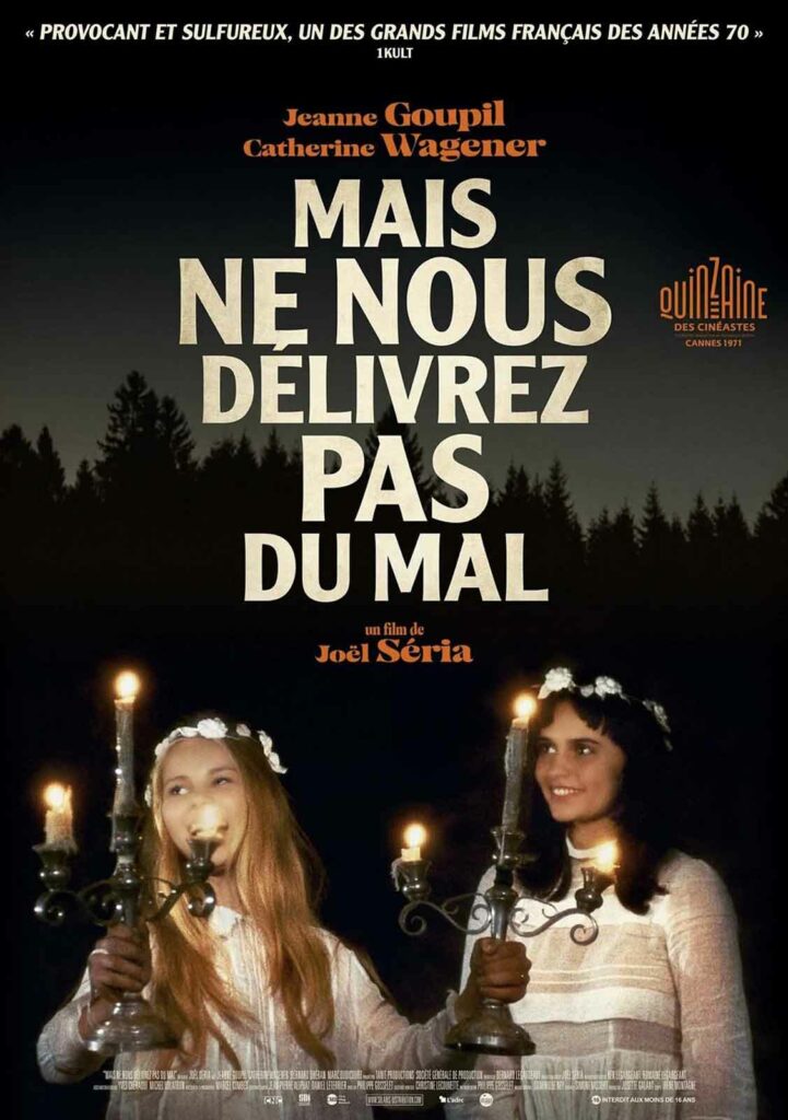 Joël Séria, c’est Les Galettes de Pont-Aven, bien sûr. Mais résumer sa carrière à cette seule comédie – si incontournable soit-elle – serait forcément réducteur. En 1971, au beau milieu d’une France encore pétrie de traditions catholiques et de conformisme social, ce réalisateur inconnu du public réalisait un premier long-métrage d’une audace rare : Mais ne nous délivrez pas du mal. D’abord interdit par la censure de l’époque, le jugeant « pervers » et « sadique », le film ne sortira qu’un an plus tard, auréolé d’un parfum de scandale tenace. C’est que ce récit, qui semble tirer son inspiration de plusieurs faits divers morbides (dont l’affaire Parker-Hulme qu’adaptera plus tard Peter Jackson dans Créatures célestes), s’attaque à deux piliers de la société française : la religion et l’innocence supposée de la jeunesse. On ne plaisante pas avec ça, surtout sous le régime rigide de Pompidou. Le scénario s’intéresse à deux jeunes filles pensionnaires d’un internat catholique, Anne (Jeanne Goupil) et Lore (Catherine Wagener). Élevées dans un milieu strict, moralisateur et verrouillé par des dogmes religieux étouffants, elles cherchent une échappatoire à l’ennui qui s’installe durablement.
