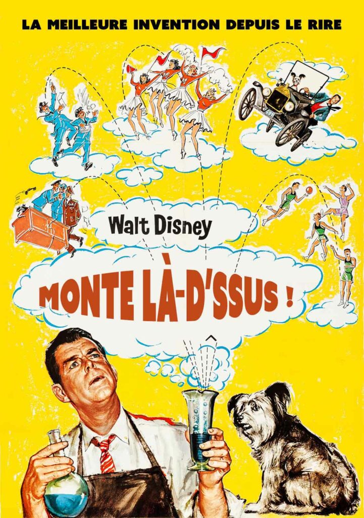Quelques années avant de signer Mary Poppins et L’Apprentie Sorcière, Robert Stevenson réalise sous la houlette de Walt Disney une comédie de science-fiction au titre français pour le moins étrange : Monte là-d’ssus (« traduction » aberrante de The Absent-Minded Professor, autrement dit « Le professeur distrait »). Il s’agit du vingt-quatrième film en prises de vues réelles produit par le studio, et son origine remonte à la nouvelle A Situation of Gravity, publiée en mai 1943 par Samuel W. Taylor dans Liberty. L’idée du film ne se concrétise cependant qu’après une rencontre bien réelle entre Disney et la science. Dans les années 1950, au Pavillon international des sciences de l’Exposition universelle de Bruxelles, Walt assiste aux démonstrations spectaculaires du professeur de chimie de Princeton Hubert Alyea, surnommé « Dr Boom » par les observateurs russes à cause de ses expériences explosives et impressionnantes. Fasciné par le charisme et l’énergie du scientifique, Disney l’invite en Californie pour reproduire ses expériences devant l’acteur Fred MacMurray (Assurance sur la mort, Ouragan sur le Caine, La Garçonnière). Ce dernier, choisi pour être la tête d’affiche du film, s’inspire des gestes, des mimiques et de l’enthousiasme contagieux d’Alyea pour créer son personnage de savant excentrique.