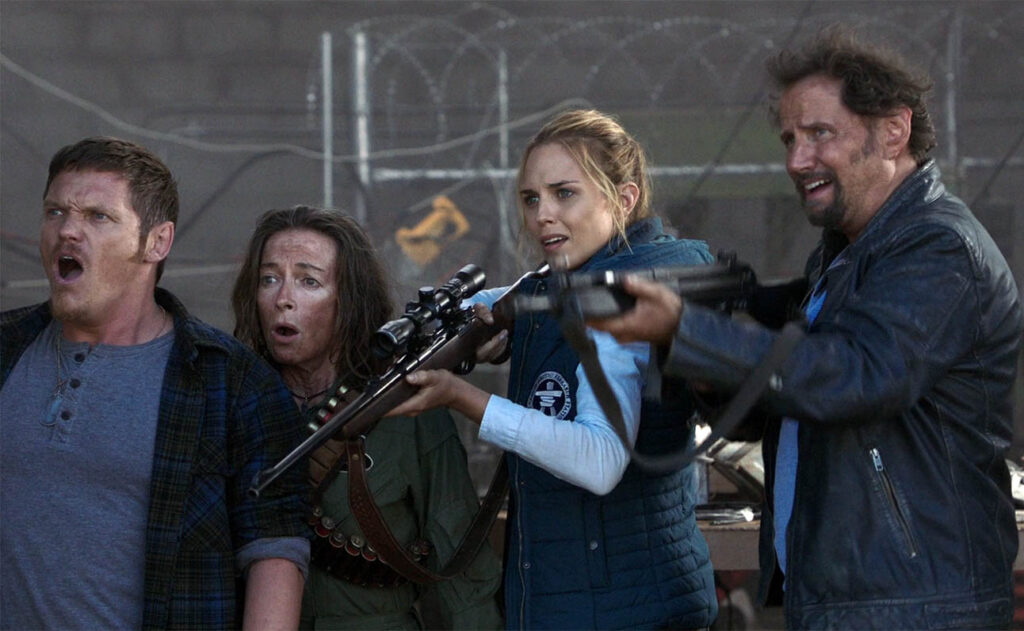Visuellement, Tremors 6 met le paquet. Les effets numériques, confiés à la société bulgare Cinemotion (déjà responsable du volet précédent), sont supervisés par Victor Trichkov et tiennent la route. Les séquences d’attaque autour de la station de recherche sont nerveuses, ponctuées de généreux effets pyrotechniques et de destructions en cascade. Côté ambiance, le film conserve la formule gagnante : un savant dosage d’action, de comédie et d’horreur, assorti d’une mécanique de western classique, celle du fort assiégé. Burt et ses alliés doivent tenir coûte que coûte face à un ennemi qui surgit de toutes parts. Dommage que la promesse d’un décor polaire ne soit tenue que lors du prologue. Le décor arctique aurait pu renouveler cette mécanique qui commence inévitablement à sentir le déjà-vu. Sur le plan narratif, le film introduit tout de même deux nouveautés intéressantes. La première est l’apparition de Valerie (Jamie-Lee Money), fille de Val McKee, le héros du tout premier Tremors campé par Kevin Bacon. Ce clin d’œil malin relie directement ce sixième opus aux origines de la saga. La seconde est l’état de santé de Burt. Infecté par un parasite depuis son séjour forcé dans l’estomac d’un Graboïde (dans une scène mémorable de Tremors 3), il doit désormais composer avec une menace plus intime et plus inéluctable. Cette fragilité donne à son personnage, jusque-là quasi indestructible, une dimension dramatique inattendue. Alors certes, Tremors 6 ne révolutionne pas la franchise, mais il en perpétue l’esprit. C’est une série B honnête, rythmée et suffisamment généreuse pour satisfaire les amateurs des grands monstres invertébrés.