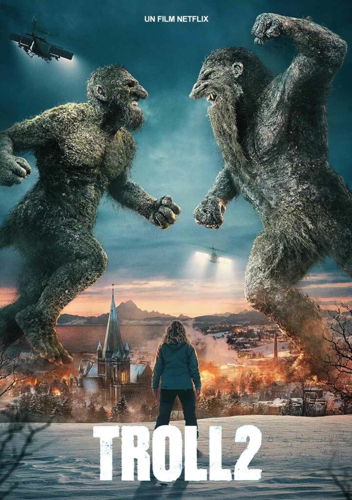 Les références visuelles, musicales et scéniques à King Kong, Godzilla et Jurassic Park abondent, Uthaug connaissant ses classiques et assumant sans détour leur influence sur son travail. La bande originale de Johannes Ringen évoque donc tour à tour les travaux d’Akira Ifukube et Max Steiner, les verres tremblent à l’approche des géants, et lorsque l’héroïne caresse le bout du nez du « gentil Troll » pour l’amadouer, on croirait revivre la scène des brachiosaures du classique de Spielberg. Le mugissement de la bête et la musique s’y réfèrent d’ailleurs ouvertement. Les dialogues ne s’interdisent aucune autodérision, notamment lorsqu’un personnage affirme « les suites sont moins bonnes que les originaux » et qu’il s’entend répondre « mais non, tout le monde adore les suites ! ». Dans Troll 2, comme dans son modèle, les images vertigineuses jouant sur les rapports d’échelle abondent, servies par des effets visuels magistraux : Nora minuscule sur un échafaudage aux côtés du Troll endormi, l’attaque de la boîte de nuit, le surgissement du « fils du roi de la montagne » dans la grotte, le premier face à face des deux monstres dans la neige, le climax au pied de la cathédrale… Bien sûr, il faut beaucoup de suspension d’incrédulité pour adhérer à cette histoire invraisemblable qui, à mi-parcours, se laisse aussi influencer par la saga Indiana Jones. Mais si l’on garde l’esprit ouvert et que l’on ne réfrène pas son envie primaire de voir des bestioles hautes comme des buildings se taper dessus, le spectacle vaut le détour. Comme on pouvait s’y attendre, une courte séquence post-générique annonce une suite possible. L’accueil des « Netflixophiles » décidera de l’existence ou non d’un potentiel Troll 3.
