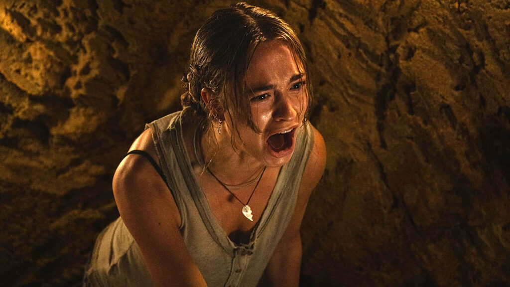 Le premier parti pris artistique fort de Primate est de s’appuyer majoritairement sur des effets spéciaux physiques. Alors que la saga La Planète des singes a prouvé la viabilité de simiens 100% crédibles conçus via la performance capture et les images de synthèse, Johannes Roberts veut des costumes et de l’animatronique. Au-delà de l’envie de rendre hommage aux films d’horreur des années 80 qui l’ont bercé, le réalisateur pense pouvoir obtenir par ce biais une terreur plus viscérale, plus tangible et plus palpable. Pari réussi. Les combinaisons impressionnantes de réalisme, conçues par l’équipe de Millennium FX (Ex Machina, Doctor Who, The Witcher, Alien Earth) et endossées par l’acteur et mime Miguel Torres Umba, font immédiatement mouche. Ben est un personnage auquel le spectateur croit d’emblée. D’autant plus que ses accès de violence sont révélés dès les premières minutes, au cours d’une scène d’ouverture évoquant celle de Jurassic Park. La menace qu’il représente n’a donc rien d’abstrait. D’autres choix radicaux viennent renforcer la puissance du film, notamment un recours assumé à une violence graphique sans concession – certaines mises à mort s’avèrent particulièrement gratinées – et une montée en tension qui emprunte autant aux codes du film de monstre qu’à ceux du slasher. Les séquences de suspense extrême se succèdent, celles qui accélèrent le rythme cardiaque, nouent l’estomac et font frissonner la nuque d’un public pourtant bien installé dans son fauteuil mais pleinement immergé dans ce climat de danger permanent. Il y avait longtemps que nous n’avions pas ressenti une telle pression. À ce titre, Primate est une franche réussite.