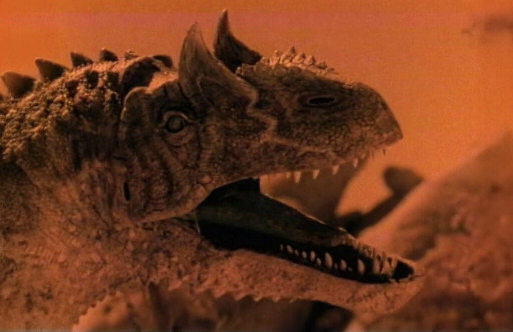 Comme à l’époque de Un million d’années avant JC ou Quand les dinosaures dominaient le monde, les deux attractions principales du film sont les playmates préhistoriques en bikini fourré (ici beaucoup moins pudiques que Raquel Welch ou Victoria Vetri) et les créatures antédiluviennes. La stop-motion qui leur donne vie est maladroite et saccadée mais ne manque pas de charme. Dans des décors miniatures minimalistes s’animent ainsi des ptérosaures, un brontosaure, un stégosaure, un camposaure et surtout un redoutable allosaure qui représente la menace principale de ce monde sauvage improbable. Quelques accessoires mécaniques sont également sollicités, notamment une marionnette pour que la tête de l’allosaure bave et une griffe grandeur nature pour qu’il puisse arracher les soutien-gorge des sauvageonnes ! Pour compléter le tableau, Don Glut sollicite un véritable iguane qu’il fait passer pour un reptile géant, dans l’esprit de Tumak fils de la jungle et Voyage au centre de la Terre. Les traits d’humour patauds du film sont principalement véhiculés par la tribu d’hommes préhistoriques flatulents qui vivent séparément des femmes et grognent dans un sabir inventé de toutes pièces. Dinosaur Valley Girls est une œuvrette sympathique mais qui n’a pas grand-chose à raconter. En plein milieu du métrage, sans doute pour faire office de remplissage, Glut insère d’ailleurs un clip avec la chanson « Jurassic Punk », dans lequel les filles dansent les seins nus pendant que les dinosaures se baladent dans la forêt. Le film a au moins le mérite d’afficher clairement ses modestes ambitions et nous évoque irrésistiblement le Dinosaur Babes de Brett Piper, sorti la même année, qui repose sur les mêmes ingrédients.