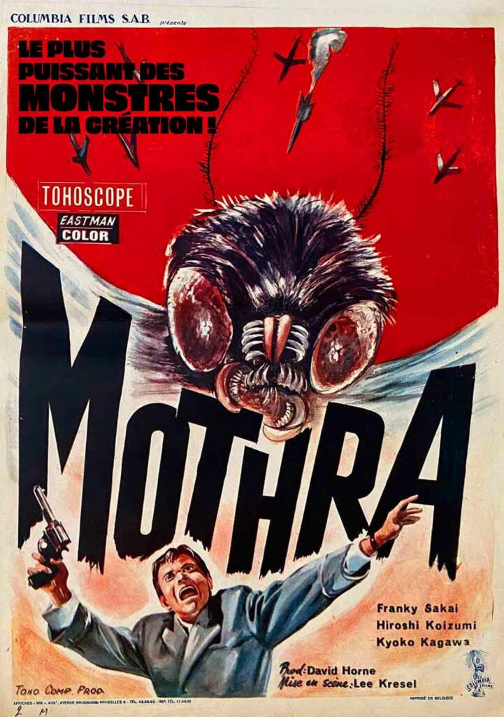 Le succès des grands films de monstres de la Toho n’est plus à prouver depuis l’entrée en scène fracassante de Godzilla en 1954. Mais Iwao Mori, président de la compagnie japonaise, n’est pas pleinement satisfait : le public féminin lui semble manquer à l’appel. Or les femmes représentent une partie non négligeable des amateurs de cinéma, d’autant qu’elles emmènent souvent d’autres personnes avec elles dans les salles. Partant de ce constat, Mori achète les droits du roman fantastique en trois parties Les fées lumineuses et Mothra, co-écrit par Takehiko Fukunaga, Shin’ichirô Nakamura et Yoshie Hotta, et demande à l’auteur Shin’ichi Sekizawa d’en tirer un scénario. En toute logique, c’est le vétéran Ishiro Honda qui hérite de la mise en scène. « Nous voulions faire quelque chose de nouveau, pour toute la famille, comme un film de Disney ou d’Hollywood », explique le réalisateur à propos de ses ambitions. « Nous voulions qu’il soit plus joyeux et plus agréable que les autres. » (1) Pour y parvenir, la Toho voit les choses en grand et s’embarque dans ce qui sera le long-métrage le plus cher jamais réalisé au Japon. Désireuse d’étendre sa présence sur le marché asiatique, la compagnie Columbia Pictures accepte de distribuer le film aux États-Unis et de contribuer à son financement. Seules conditions de cet accord : le monstre vedette ne doit pas seulement attaquer le Japon. D’où la création de la ville fictive de New Kirk City et de la nation de Rolisica.