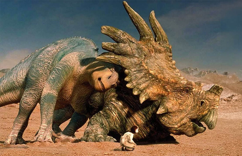 Il faut reconnaître que Dinosaure met le paquet sur le souci du détail de son imagerie numérique. Chaque écaille, chaque mouvement de queue, chaque souffle de vent dans le désert est rendu avec une précision quasi photographique. Certaines scènes marquèrent les esprits à l’époque, notamment l’attaque de la tempête de sable, le face-à-face avec les carnotaures ou encore la traversée du canyon asséché. Même si Disney ne peut pas résister à la tentation de faire parler ses dinosaures, ces derniers n’en perdent pas leur majesté. D’autant que le film a le bon goût d’éviter de se muer en comédie musicale. Rédigé par John Harrison (artiste éclectique qui signa aussi, dans un registre radicalement différent, la musique de Creepshow) et Robert Nelson Jacobs (Le Chocolat, Terre-Neuve, Souris City), le scénario définitif a été simplifié et expurgé de sa dimension biblique. Dinosaure cherche désormais à défendre des valeurs universelles telles que le courage, la solidarité et le sens des responsabilités. La trame elle-même n’est pas sans rappeler celle du Petit dinosaure et la vallée des merveilles de Don Bluth, tandis que la carte de l’humour est principalement assurée par la présence des lémuriens. Indiscutable réussite technique, Dinosaure marque une étape clé dans la transition de Disney vers l’animation 3D. Plus aucun long-métrage animé du studio, à l’exception de La Princesse et la grenouille, ne dérogera désormais à l’usage des images de synthèse. En attendant, les cinéphiles mélancoliques rêvent d’un monde parallèle dans lequel le Dinosaure de Paul Verhoeven existerait, aux côtés du Dune de Jodorowsky et du Napoléon de Kubrick.