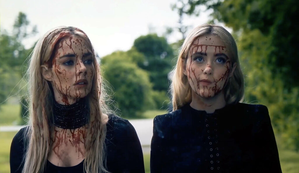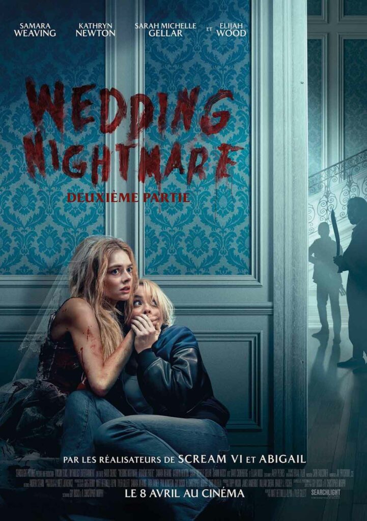 Depuis Wedding Nightmare, Matt Bettinelli-Olpin et Tyler Gillett (membres du collectif Radio Silence) ont fait du chemin. Après avoir signé deux opus dispensables de la saga Scream puis le sympathique Abigail, ils planchent sur un nouveau scénario original consacré aux liens conflictuels noués entre deux sœurs, dont ils souhaitent confier les rôles à Samara Weaving et à Kathryn Newton. Familières de leur univers (la première est l’héroïne de Wedding Nightmare, la seconde l’un des personnages principaux d’Abigail), les deux jeunes femmes ont un indiscutable air de famille qui sied à merveille à ce projet. Mais entretemps, Searchlight Pictures propose aux réalisateurs de se lancer dans une suite de Wedding Nightmare. Difficile de résister à une telle proposition, d’autant que toute l’équipe en a gardé un excellent souvenir et que le public a porté aux nues ce long-métrage réjouissant – probablement ce que les duettistes ont fait de mieux à l’époque. Pour autant, Bettinelli-Olpin et Gillett n’ont pas très envie de balancer aux orties leur histoire de sœurs fâchées sur le point de se réconcilier. Avec l’aide des scénaristes Guy Busick et R. Christopher Murphy, déjà à l’œuvre sur le premier Wedding Nightmare, ils intègrent donc cette idée dans l’histoire du second opus qui, comme le précédent, est majoritairement tourné à Toronto.