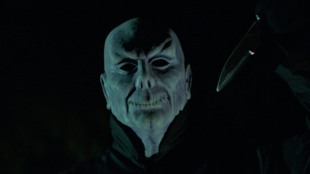 Tout commence comme une sorte de remake de la scène de douche de Psychose, sauf que les sexes sont inversés. David DeCoteau étant à la barre, c’est un jeune homme qui se dévêt cette fois-ci sous le jet d’eau. L’agresseur armé d’un couteau surgit soudain… et arbore le même visage que sa future victime ! Mais tout ça n’est qu’un rêve. Marqué par un récent traumatisme, Charlie (Jamie Gannon) est sujet à de nombreux cauchemars de ce type, au grand dam de sa petite amie Angela (Melissa Renée Martin) qui lui conseille d’aller voir un psychiatre. « Ma famille n’est pas aussi riche que la tienne, je ne peux pas me payer une thérapie chaque fois que je vais mal », lui lâche-t-il, un brin amer. Lorsque nous découvrons Kristen (Erinn Carter), la sœur d’Angela, le fossé social se creuse davantage. Car cette jeune femme hautaine et élégante vient d’acheter une maison qui sera le siège de sa future entreprise. Là, elle souhaite organiser l’anniversaire d’Angela sous forme d’une murder party où les invités feront semblant d’être agressés par un tueur masqué. Sauf qu’un véritable assassin va se mêler aux festivités…