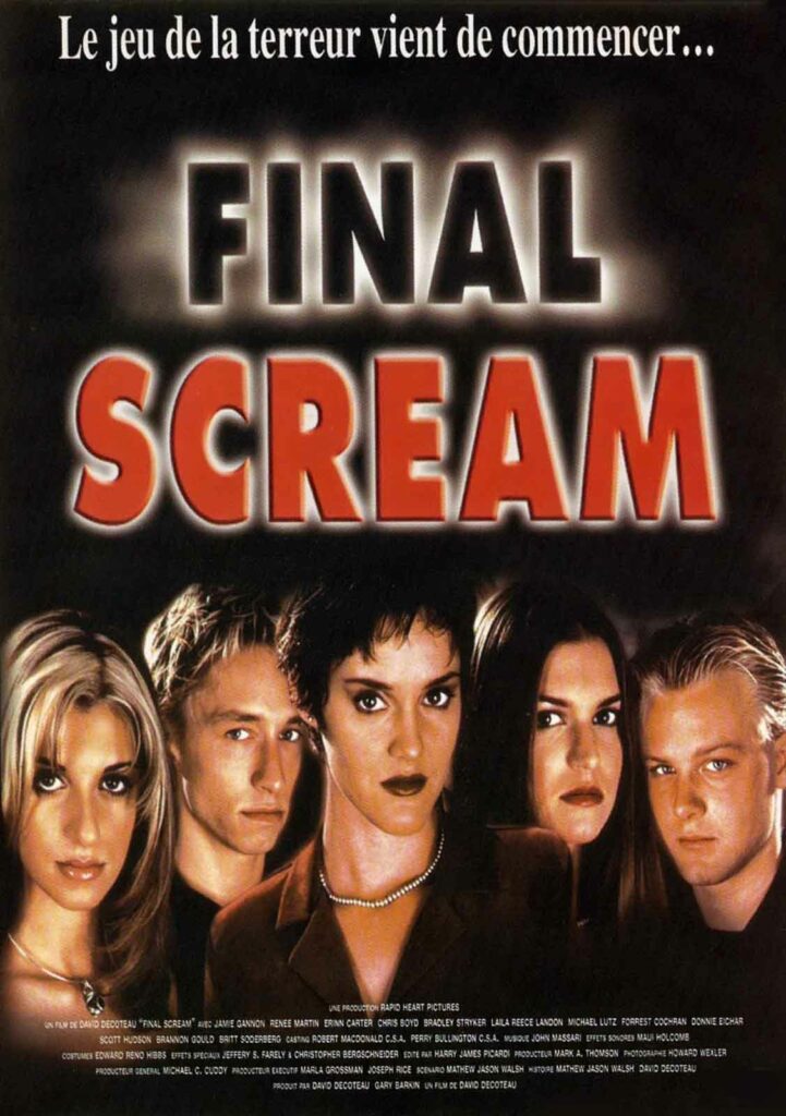 Scream étant la source d’inspiration principale du film, les dialogues se réfèrent à Halloween et Vendredi 13, tandis que le tueur lui-même arbore un look proche de celui de Michael Myers. Mais le scénario finit par s’éloigner de la mécanique de ceux de Wes Craven pour s’aventurer plutôt sur le terrain de Week-end de terreur. Si la mise en forme de Final Scream est soignée (décor photogénique, belle photographie d’Howard Wexler au format Cinémascope, musique ample de John Massari), il ne s’y passe rien de foncièrement passionnant. Les protagonistes passent leur temps à discuter pour tous nous expliquer (leurs intentions, leur passé, les liens qui les unissent, les jalousies, les rancœurs) et se révèlent tous plus idiots les uns que les autres. DeCoteau lui-même gère très maladroitement les codes du slasher, avec lesquels il n’est visiblement pas très à l’aise, et échoue donc chaque fois qu’il tente de nous effrayer ou de nous surprendre. Pour « cacher la misère », il utilise les vieux trucs éprouvés dans ses autres films : la caméra qui flotte et les coups de tonnerre permanents. Avec en prime la scène incontournable qui est devenue sa marque de fabrique : le type musclé en caleçon qui se prélasse sur son lit. Finalement, seule Erinn Carter tire son épingle du jeu en machiavélique maîtresse de cérémonie, mais c’est insuffisant pour rendre le film mémorable. Cela dit, l’opération sera très rentable pour DeCoteau, Final Scream se comportant particulièrement bien dans les vidéoclubs de l’époque.