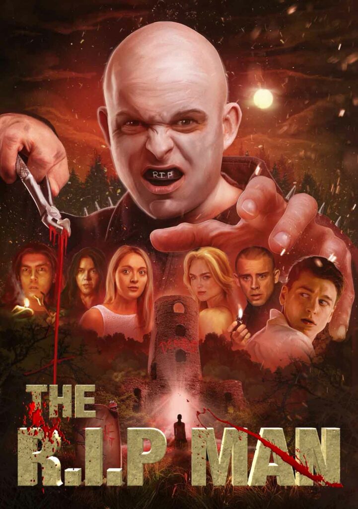 En 2020, le producteur et scénariste Rhys Thompson commence à concevoir l’idée de ce qui deviendra The R.I.P. Man. « Un soir d’hiver, je zappais sur les chaînes de télé et je suis tombé par hasard sur un documentaire consacré à une maladie buccale rare appelée anodontie », raconte-t-il. « Une idée m’est alors venue à l’esprit : et si mon antagoniste en était atteint et l’assumait pleinement ? Petit à petit se sont assemblées les pièces du puzzle, comme ce protège-dents personnalisé et effrayant ou encore ces SMS annonçant la date du décès des victimes. » (1) Mais une bonne idée ne suffit pas. Pour aider à convaincre des investisseurs de s’embarquer dans cette aventure, Rhys Thompson et le réalisateur Jamie Langlands (The Cellar) se lancent dans un court-métrage/teaser dans le but d’aider à boucler le financement nécessaire à l’élaboration du long. A force de persévérance, The R.I.P. Man voit enfin le jour sous son format définitif grâce à un budget pourtant extrêmement modeste estimé à 20 000 £. Si Thompson cite parmi ses influences Halloween, Le Silence des agneaux, Scream ou Les Griffes de la nuit, l’envie qui sous-tend ce film est le lancement d’un tout nouveau croquemitaine suffisamment marquant et original pour donner naissance – pourquoi pas ? – à une franchise.