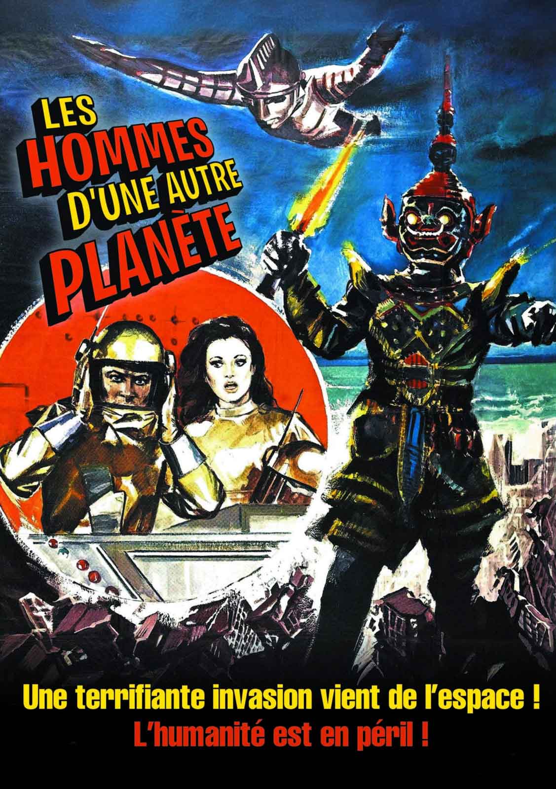 En 1974, le réalisateur thaïlandais Sompote Sands (Crocodile) collabore avec le studio japonais d’Eiji Tsuburaya (créateur des effets spéciaux de la saga Godzilla originale) pour donner naissance à deux curiosités du cinéma bis asiatique : Hanuman pob Jed Yodmanud (baptisé sur le marché international The 6 Ultra Brothers vs. the Monster Army) et Yak Wat Jaeng phob Jambo A (alias Jumborg A & Giant). Dans le premier, le super-héros Ultraman s’allie au dieu-singe Hanuman pour affronter une armée de monstres recyclés des séries produites par Tsuburaya. Mais Yak Wat Jaeng phob Jambo A est un cas encore plus particulier. Dans ce film sans queue ni tête, le cyborg japonais géant Jumborg Ace (échappé de la série japonaise qui porte son nom) affronte la statue colossale Yak Wat Jaeng. Sorti en mars 1974, le film disparaît bientôt des radars, jusqu’à ce qu’une compagnie de production taïwanaise en récupère les droits et le remonte entièrement sous un nouveau titre : Huo Xing Ren, connu aussi sous le titre de Mars Men, et rebaptisé Les Hommes d’une autre planète pour sa distribution en France. Cette nouvelle version, celle que tout le monde connaît désormais, est réalisée par Chan Hung-Man. Celui-ci ajoute toute une série de nouvelles scènes dialoguées, avec un casting intégralement taïwanais, pour un résultat délirant qui défie l’entendement.