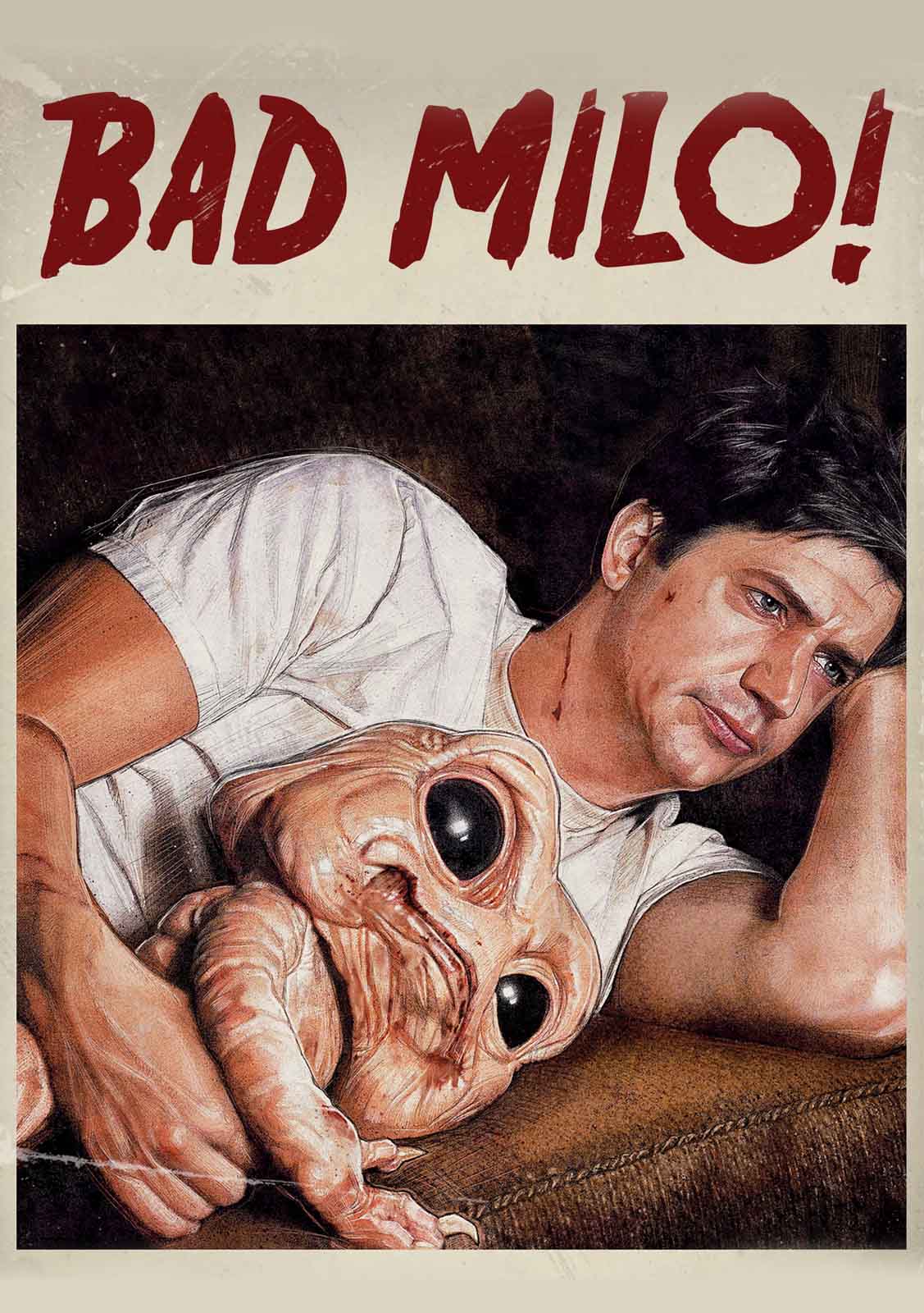 Désireux de recourir à des effets spéciaux « à l’ancienne », le réalisateur sollicite l’atelier Fractured FX Inc. de Justin Raleigh (Insidious, Sucker Punch, Army of the Dead) pour concevoir une marionnette animatronique personnalisant cette créature capable d’évoquer tour à tour la rage, la voracité ou l’affabilité. Les effets numériques interviennent pour lui faire cligner les yeux et pour effacer les deux marionnettistes qui la manipulent, mais sa présence physique est parfaitement palpable. Le design d’Aaron Sims (Stranger Things, Ça, Ready Player One), qui évoque parfois celui du bébé reptile de la série V, ne cherche jamais à nous faire croire à un être réaliste. Ce monstre malicieux et affamé est de la même trempe que les Critters, les Ghoulies ou les Gremlins, mais ce n’est pas seulement la nostalgie des années 80 qui dicte son look. Il se positionne avant tout comme un symbole, la part sombre d’un héros affable qui s’éveille pour faire ce dont il rêve inconsciemment sans oser se l’avouer : affronter ceux qui lui pourrissent la vie et leur rendre la monnaie de leur pièce. Milo (car tel est le nom de la bête) est le Mister Hyde de Duncan, l’équivalent gastrique du singe d’Incident de parcours ou du George Stark de La Part des ténèbres. Si cette bestiole anthropophage est l’attraction principale du film, les excellentes prestations de Peter Stormare en psychiatre cinglé, Patrick Warburton en patron amoral ou Stephen Root en père démissionnaire sont délectables, les dialogues reposant en grande partie sur des joutes verbales totalement improvisées. Exploité de manière confidentielle en salles et en vidéo, Bad Milo est donc une curiosité très recommandable.