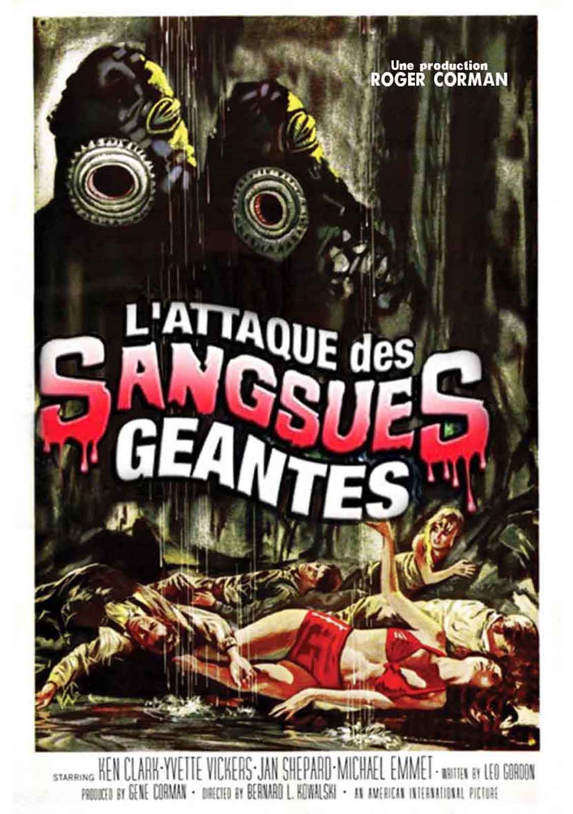 Deux ans après L’Attaque des crabes géants, Roger Corman réitère dans le domaine des invertébrés démesurés avec cette Attaque des sangsues géantes dont il confie cette fois la mise en scène à Bernard Kowalski, vétéran de séries télévisées telles que Gunsmoke ou Les Incorruptibles. Prometteurs, le titre et les posters d’époque dissimulent hélas un film ennuyeux et longuet malgré sa modeste durée de 62 minutes. Nous sommes dans une petite ville de Floride, où les autochtones viennent volontiers traîner derrière le comptoir du ventripotent barman Dave Walker (Bruno VeSota), sosie quelque peu amorphe d’Orson Welles. L’épouse de ce dernier, Liz (Yvette Vickers), est une bimbo provocante qui fait saliver tous les habitués du bar, notamment l’athlétique Cal (Michael Emmet). Tandis que le drame conjugal couve, un accident secoue les chaumières. Un chasseur a en effet été retrouvé défiguré dans les marais. Attribuant ce décès violent à un crocodile, la police classe rapidement l’affaire. Mais Steve Benton (Ken Clark), un agent chargé de chasser les braconniers et de préserver l’environnement, décide de mener sa propre enquête. Comme il s’agit d’un beau gosse blond et musclé, et qu’il est amoureux d’une jolie brunette dont le père est scientifique, les amateurs des clichés de la science-fiction à l’ancienne ne sont pas dépaysés.