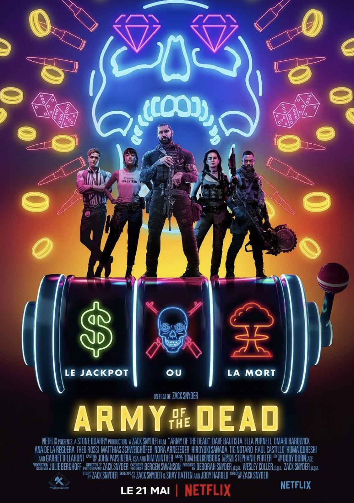 Tout commence par un accident de la route au beau milieu du désert du Nevada. Un convoi militaire transportant une mystérieuse cargaison issue directement de la zone 51 et la voiture d’un couple de jeunes mariés entrent violemment en collision. Un zombie qu’on imagine fruit d’expérimentations top secrètes de l’armée (comme au bon vieux temps du Retour des morts-vivants) s’échappe alors, sème la mort, infecte quelques militaires au passage puis se rend à Las Vegas. La contamination se répand comme une traînée de poudre, muant la ville qui ne dort jamais en nid grouillant de zombies où les créatures, mises en quarantaine, sont livrées à elles-mêmes. C’est alors que le film d’action/horreur se met à intégrer les codes du « film de casse ». Car un petit commando, mené par le mercenaire Scott Ward (Dave Bautista), accepte une mission presque suicidaire : s’armer jusqu’aux dents, s’immiscer au milieu du flot affamé de morts-vivants et forcer le coffre-fort d’un casino qui renferme 200 millions de dollars… le tout avant la frappe nucléaire qui éradiquera Las Vegas quelques heures plus tard !