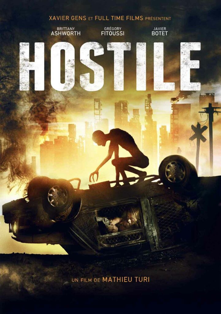 Mathieu Turi a pu très tôt concrétiser ses rêves de cinéma. À peine sorti de l’ESRA (l’école supérieure de réalisation audiovisuelle), il est propulsé assistant réalisateur adjoint sur plusieurs superproductions hollywoodiennes tournées partiellement à Paris (G.I. Joe, Inglorious Basterds, Au-delà et beaucoup d’autres). Difficile d’imaginer plus beau pied à l’étrier ! Mais ce sont ses deux courts-métrages de genre qui vont lui permettre d’entrer dans la cour des grands : Sons of Chaos, un récit post-apocalyptique, et Broken, un huis-clos confiné dans un ascenseur. Ces petits films de genre font parler d’eux, au point que Xavier Gens (Frontière(s), Hitman, Cold Skin) lui propose de passer à la vitesse supérieure en s’attaquant à un long-métrage. Ce sera Hostile, qui intègre un certain nombre d’éléments issus de Sons of Chaos et Broken. Sur la base du scénario et avec le parrainage de Gens, qui sera producteur délégué, le film se concrétise sous la houlette de la compagnie Full Time Film. Les petits moyens à sa disposition (un budget d’environ un million d’euros) n’empêchent pas Mathieu Turi de voir grand et de partir tourner en anglais avec un casting international sur trois continents : cinq jours à New York, cinq jours à Paris et le reste en extérieurs naturels à Ouarzazate.