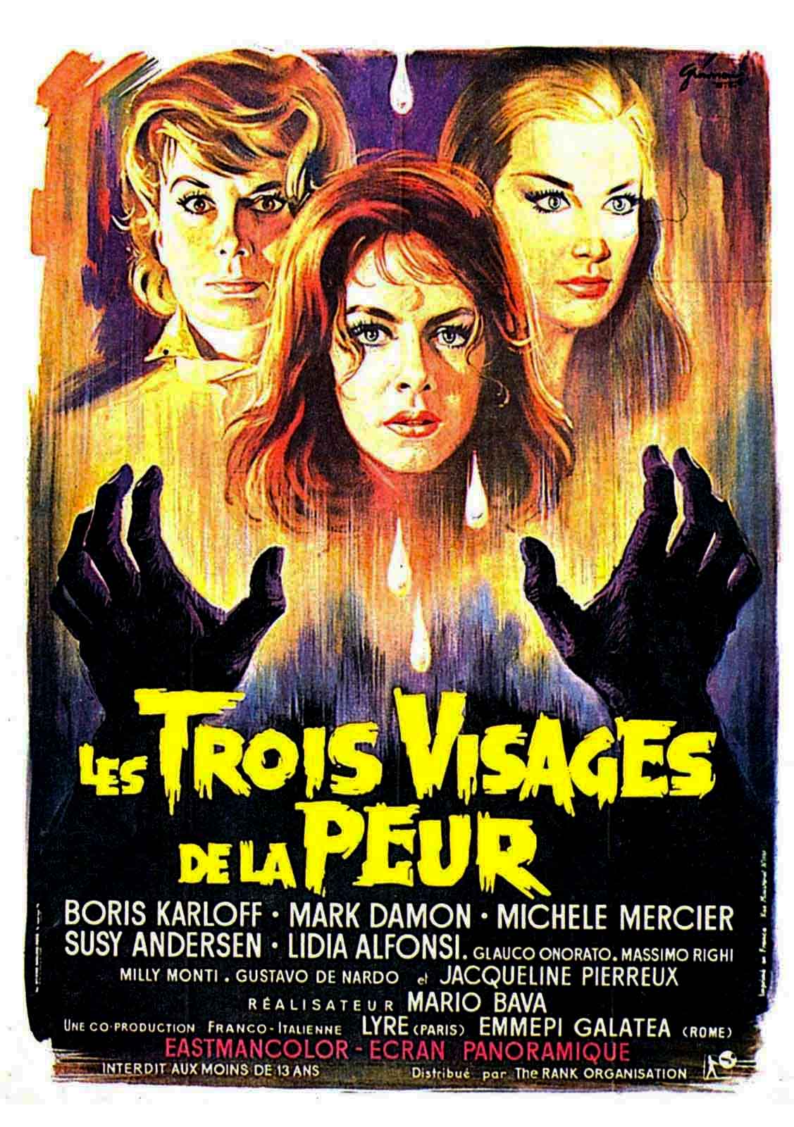 En s’attaquant à l’exercice du film à sketches, Mario Bava s’est efforcé d’aborder trois récits aussi différents que possible, leur seul véritable point commun étant l’épouvante, comme le suggère assez bien un titre poétique et évocateur. Tout commence avec Boris Karloff qui, pince sans rire, se présente au spectateur (ce qui n’est pas superflu, vu sa tendance habituelle à recouvrir son visage de latex) et annonce les thématiques du film en évoquant le mythe des vampires, alors brusquement éclairé de rouge. Le spectateur, conditionné, se cale dans son fauteuil, tandis que s’amorce le premier récit, « Le Téléphone », inspiré d’une nouvelle d’Howard Snyder. Son héroïne, Rosy, reçoit des messages téléphoniques menaçants de la part de Frank, qu’elle a trahi et qui vient de s’évader de prison. Elle supplie alors Mary, une ancienne amie délaissée, de lui tenir compagnie. Ce sketch puise surtout son intérêt dans la photogénie de Michèle Mercier et dans les effets de mise en scène de Bava, qui rachètent en partie l’extrême classicisme d’une intrigue un tant soit peu vaudevillesque.