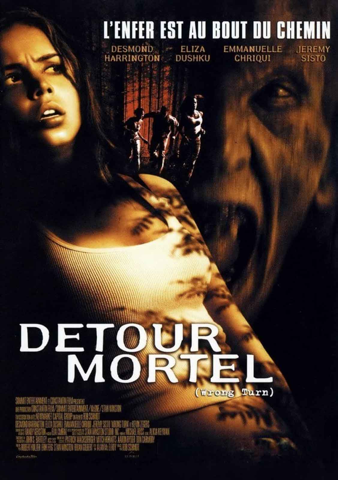 Produit par le maquilleur Stan Winston (Terminator, Jurassic Park, A.I. Intelligence Artificielle), Détour Mortel marche ouvertement sur les traces de Massacre à la Tronçonneuse, Délivrance et La Colline a des Yeux. Dès les premières minutes, en effet, il apparaît clairement que nous sommes en terrain connu. Après un prologue proposant une variante horrifique sur celui de Vertical Limits, Détour Mortel se centre sur Chris Flynn (Desmond Harrington), un jeune médecin coincé dans un embouteillage qui a la mauvaise idée de prendre un détour via une petite route de terre accidentée. Au beau milieu de la forêt, son attention est attirée par le cadavre d’un cervidé, et il heurte de plein fouet un 4X4 arrêté en plein virage. Ses occupants, cinq jeunes gens venus camper dans la région, sont tombés dans ce qui ressemble à un piège, car leurs quatre pneus ont éclaté en même temps. En quête de secours, le petit groupe s’enfonce dans la forêt et tombe sur une cabane au contenu inquiétant… et aux habitants proprement terrifiants. A partir de là, Détour Mortel décolle réellement, et s’arrache à ses prestigieuses influences pour malmener les nerfs des spectateurs au cours d’une petite heure et quart de tension ininterrompue.