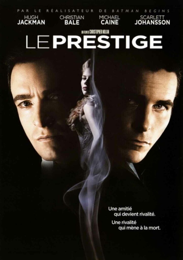 Même s’il a intégré sans complexe les grands studios hollywoodiens, Christopher Nolan demeure un cinéaste à part, imprégnant chacun de ses films d’une forte personnalité et d’une stylisation raffinée. Confiez-lui le remake d’un polar norvégien, il concocte un somptueux Insomnia dépassant en audace et en noirceur son modèle. Demandez-lui de reprendre la franchise Batman, il la dynamite en bonne et due forme pour revenir aux sources du comic book. On ne s’étonne donc guère, lorsqu’il s’attaque à l’adaptation du roman « Le Prestige » de Christopher Priest, de découvrir un film hors norme, surprenant d’un bout à l’autre et ciselé au millimètre près. Situé à Londres au début du siècle dernier, Le Prestige nous conte la rivalité entre deux jeunes magiciens surdoués, Robert Angier et Alfred Borden. Lorsque la mort de la femme du premier est provoquée par une erreur du deuxième, leur compétition amicale se mue en véritable guerre impitoyable dans laquelle tous les coups sont permis. Un jour, Borden met au point un tour spectaculaire, « l’homme transporté », dans lequel il semble se dédoubler sur scène. Fou de jalousie, Angier décide d’en percer le secret. Ce sera le début de la fin…