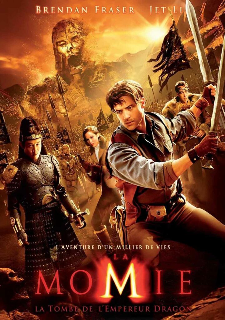 Le Retour de la Momie s’était avéré bien décevant, transformant l’aventure grisante et mouvementée du premier opus en une espèce de bande démo de jeu vidéo truffée d’effets numériques grotesques. Que pouvait-on attendre d’un troisième épisode, sachant en outre que Stephen Sommers céda sa chaise de réalisateur à un Rob Cohen peu réputé pour sa finesse (Fast and Furious, XXX) ? Pas grand-chose à vrai dire, et si le divertissement est au rendez-vous, mieux vaut ne pas être trop regardant côté scénario. L’idée de transposer le motif de la momie – habituellement égyptien – dans la Chine antique permet de varier quelque peu les plaisirs. Fidèle à son goût pour le cinéma asiatique (il réalisa Dragon, la biographie romancée de Bruce Lee), Cohen narre sous forme de flash-back les méfaits d’un redoutable empereur incarné par Jet Li. Ayant vaincu tous ses opposants, sur le corps desquels il fit bâtir la Muraille de Chine, ce redoutable tyran n’a bientôt plus qu’un adversaire à contrer : la Mort. En quête d’éternité, il fait appel à une sorcière (Michelle Yeoh) qu’il trahit aussitôt en faisant écarteler son amant. Cette dernière lui lance alors une malédiction, traduite à l’écran par sa métamorphose en tas de boue puis en torche humaine et en statue… Nous sommes donc loin des bandelettes traditionnelles ! Le temps passe et revoilà la sympathique trogne de Brendan Fraser, dans l’Angleterre de 1946. Son épouse est désormais incarnée par Maria Bello (Rachel Weisz ayant préféré s’en tenir là) et leur fils Alex (Luke Ford) est désormais un jeune émule d’Indiana Jones.