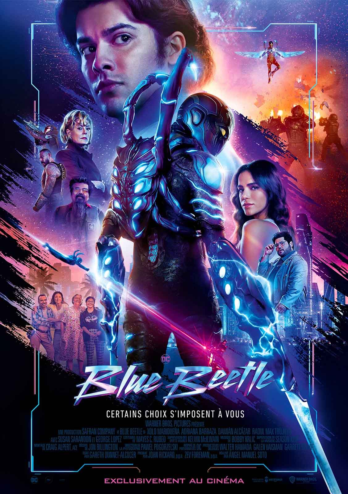 Le scarabée bleu aura eu plusieurs vies avant de trouver sa forme définitive dans les pages des comics DC. Créé par Charles Nicholas Wojtkowski et Will Eisner, il vit ses premières aventures dans Mystery Men Comics en 1939 sous les traits du policier Dan Garret, se muant en super-justicier grâce à un équipement dernier cri et des vitamines dopantes. Après le dépôt de bilan de l’éditeur Fox Feature Syndicate, Blue Beetle atterrit chez Charlton Comics qui le ressuscite au milieu des années 60 et réinvente ses origines. Dan Garret est désormais un archéologue devenu super-héros grâce à un objet magique d’origine égyptienne en forme de scarabée. Au début des années 80, c’est DC Comics qui récupère les droits du personnage après la fermeture de Charlton, mettant en avant deux autres personnages : l’inventeur Ted Kord, disciple de Dan Garrett, et l’adolescent Jaime Reyes, son successeur. C’est sur cette variante plus récente de l’histoire que s’appuie l’adaptation cinématographique confiée par Warner et le studio DC au cinéaste portoricain Angel Manuel Soto. Le crédo des films DC post-Zack Snyder étant l’humour et la légèreté (comme en témoignent Shazam, The Suicide Squad ou The Flash), c’est cette voie qu’emprunte naturellement Blue Beetle.