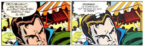 plupart des onomatopées du comics original ont disparu, afin d’atténuer